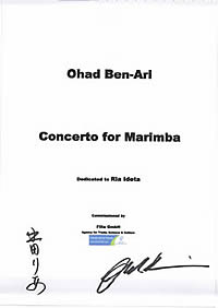ベン=アリ氏の新しい作品は「マリンバ・ソロとオーケストラのための協奏曲」としてマリンバ奏者・出田りあさんに献呈されます。初演は来る9月21日(日)杉並公会堂にて日本フィルハーモニー交響楽団(山田和樹指揮)との共演にて行われる予定です。